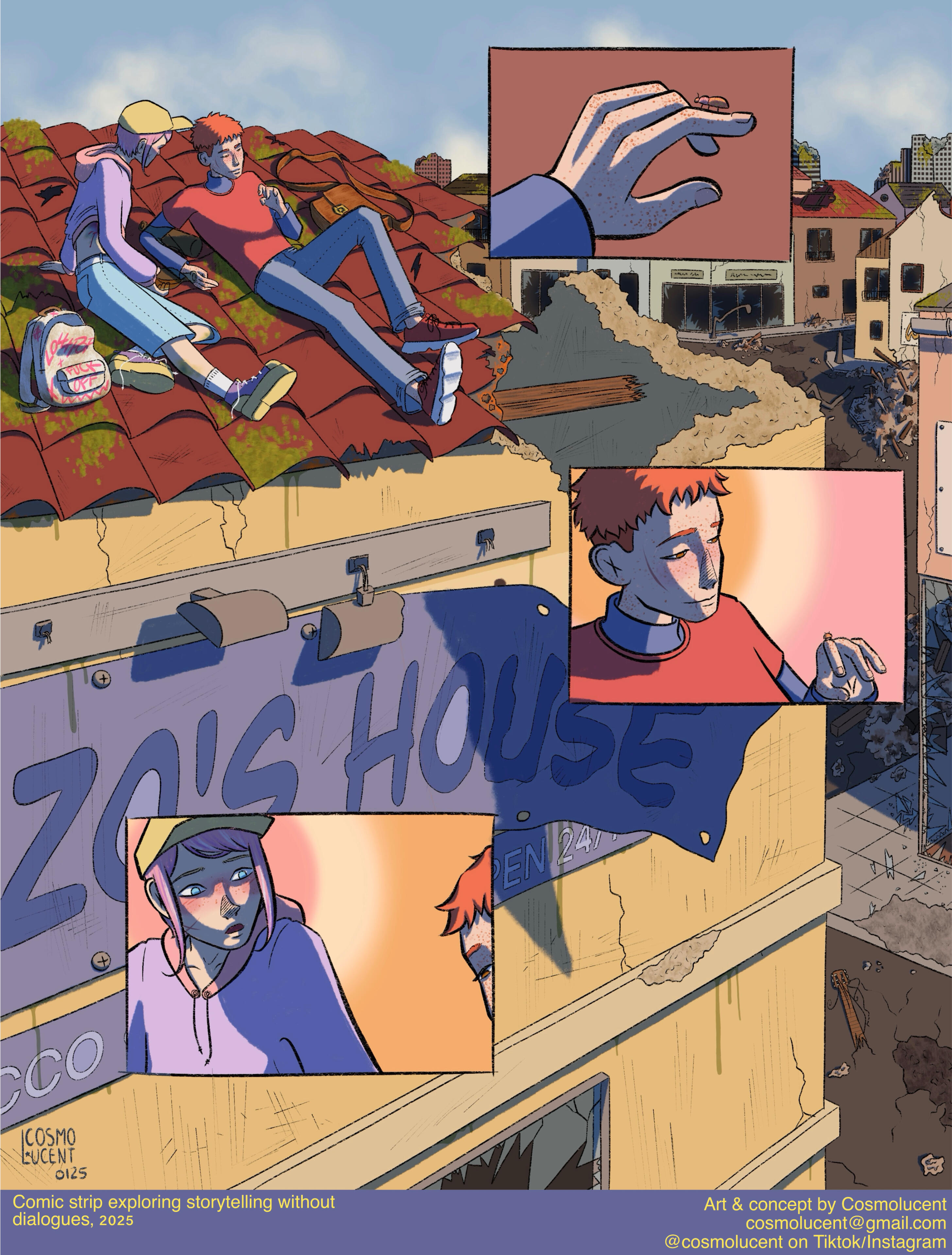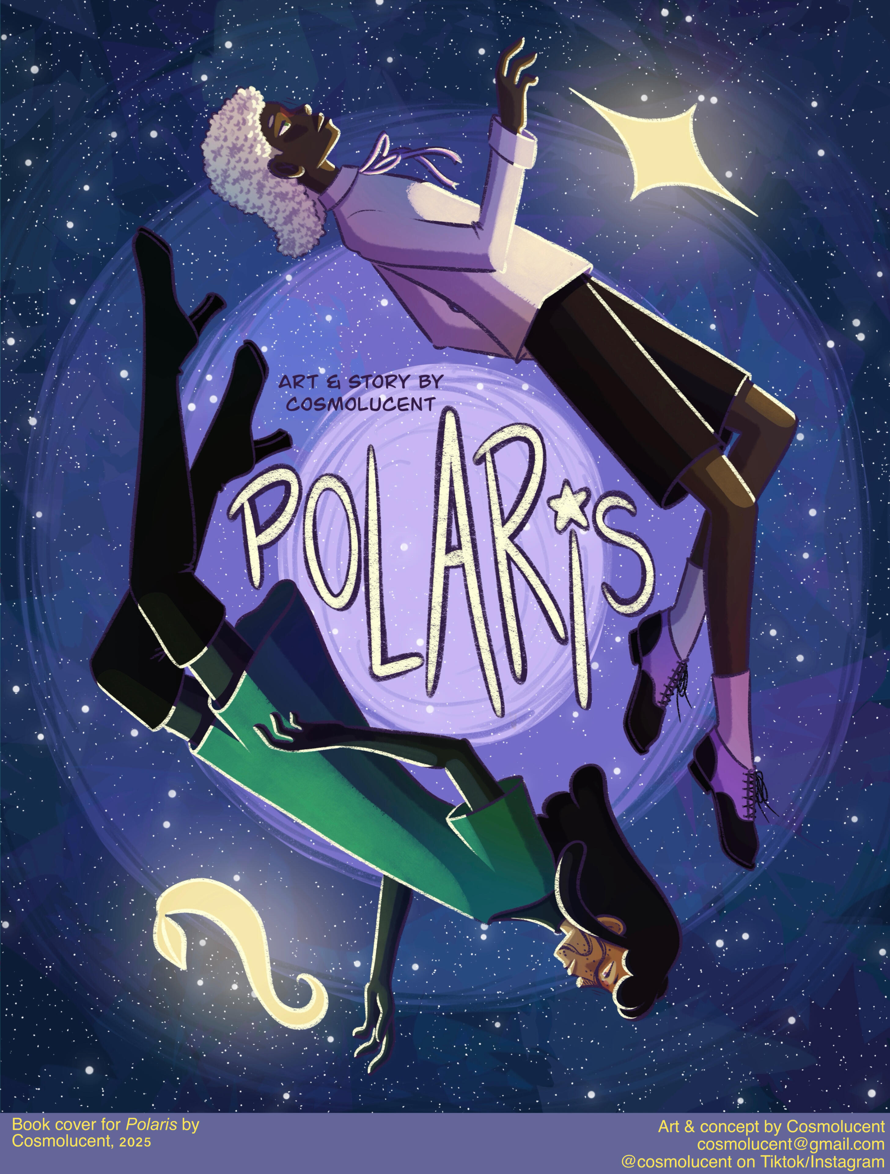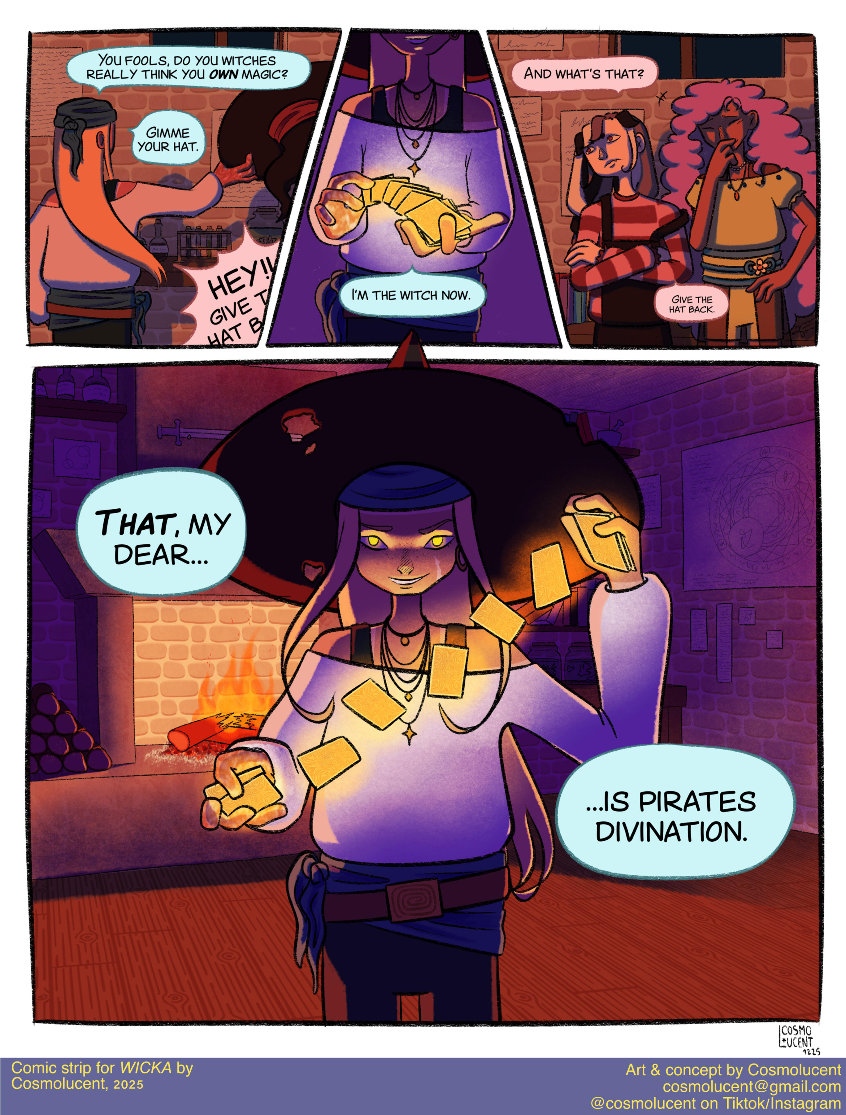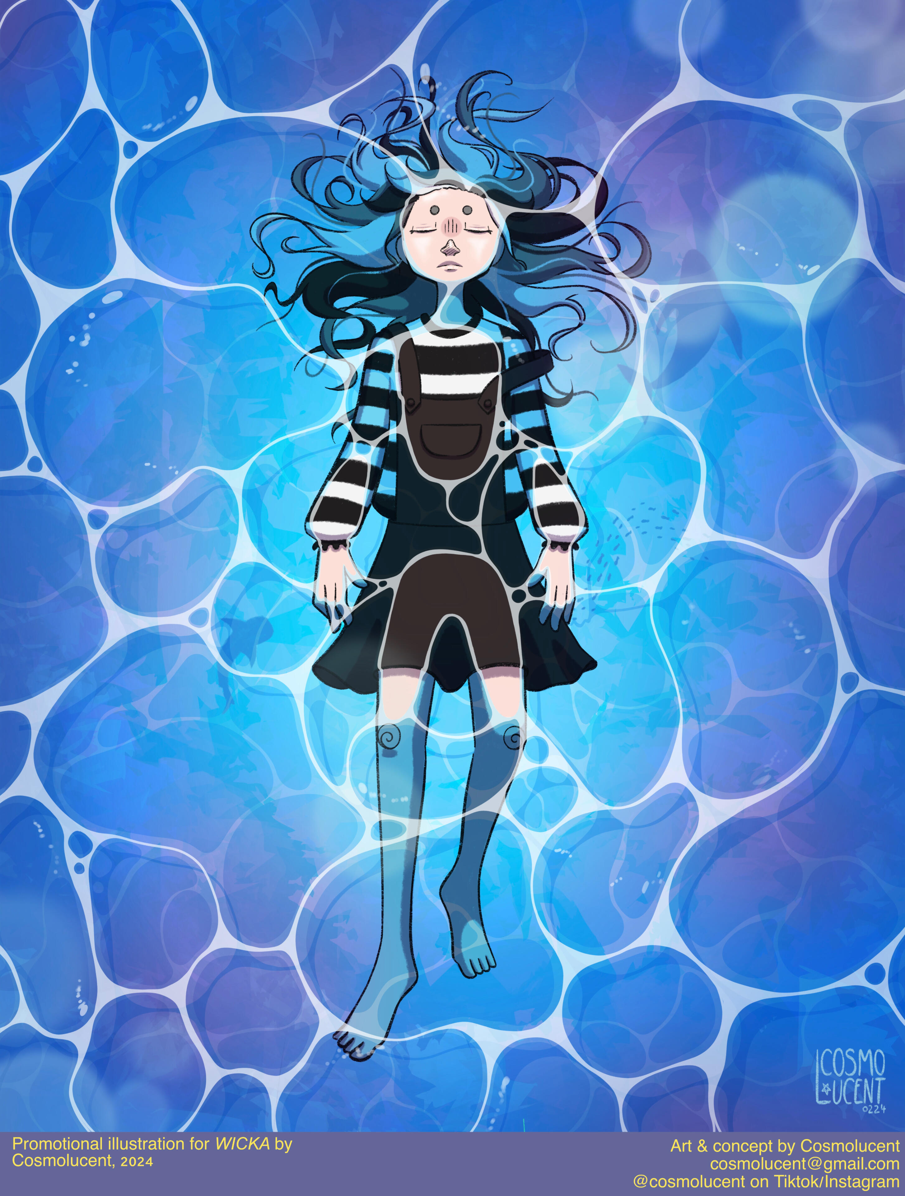 Cosmo is a french illustrator and visual artist. Through both digital and traditional mediums, they depict an enchanting world of fantasy and coming-of-age tales in a soft and colorful approach. Their cartoony style, coupled with their affection for detail and deep symbolism allows them to tell stories captivating both younger and older audience.Growing up in the South of France, they discovered their passion for art early on and they have been studying visual expression for almost 15 years. Despite being the pupil of Lucy Mazel for a while in 2017, they are mainly self-taught. They have since then worked on various indie projects and commissions. They were a chara-designer and animator for the game Glorybound (unreleased) in its beginning, as well an artistic director for several local french associations. Their most known works online are their redesigns of LGBT+ flags and their Everyday Witches series of digital watercolors.They have also been working on their own witchy comic WICKA for over 7 years and they plan to release it in a couple years.